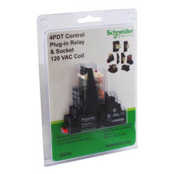 Miniature Plug-in Relay, 4 C/O, 120 VAC w/Test Button, Zelio RXM Series |