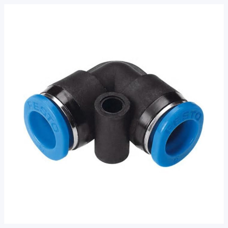 Push-in 90 deg Connector, 2 Ports 6mm OD tube, Blue ring |