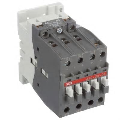 ABB A30-30-01-84 Contactor,NEMA,3 Pole,34A,110-120VAC@60Hz,110VAC@50Hz Coil,DIN Rail/Panel Mount |