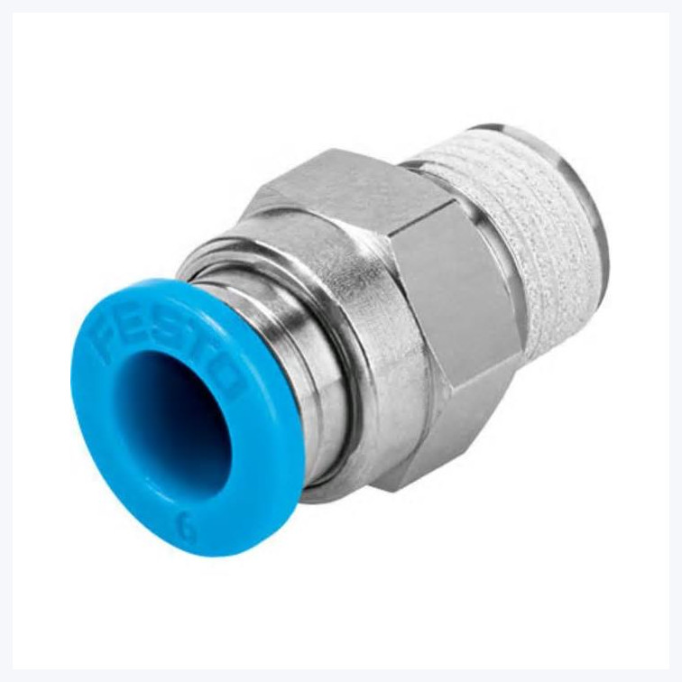 Push-in Connector, 1 Port R 3/8 Thread & 1 Port 6mm OD tube, Blue ring |