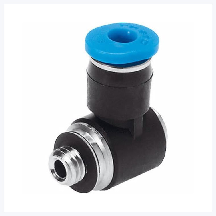 Push-in 45 deg Connector, 1 Port M7 Thread & 1 Port 6mm OD tube, Blue ring |