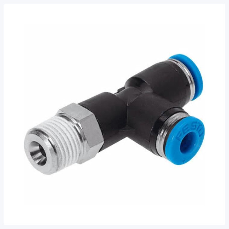 Push-in T Connector, 1 Port R 1/4 Thread & 2 Ports 6mm OD tube, Blue ring |