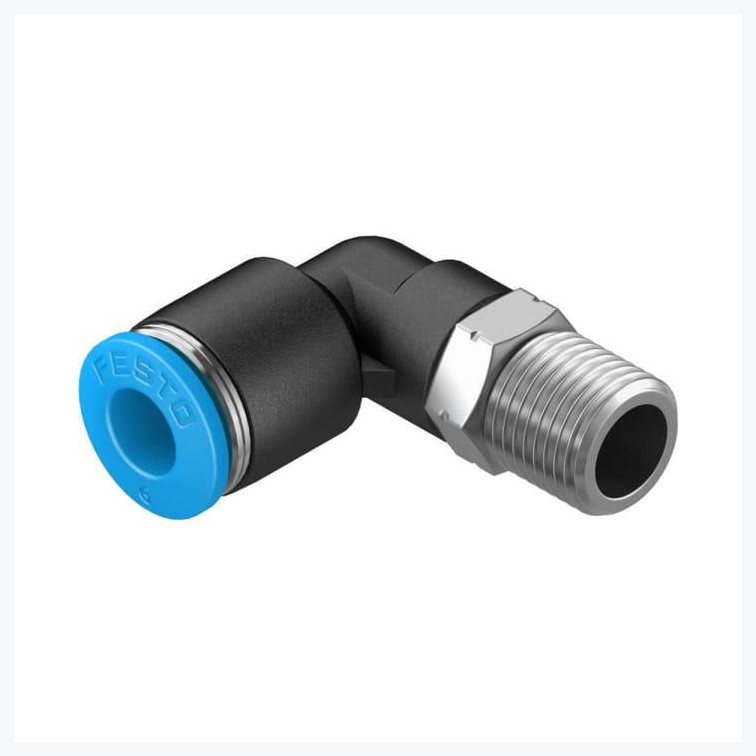 Fitting, L, PBT, R1/8 male to 6mm push in conn |