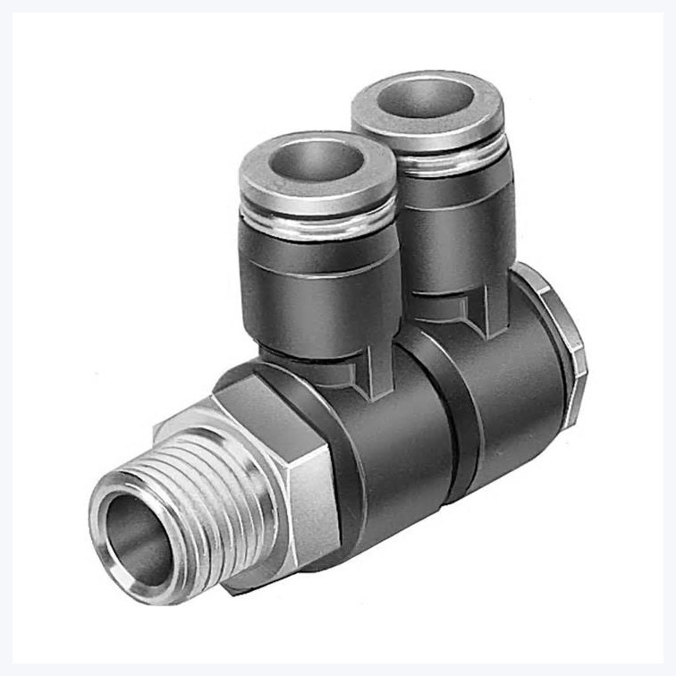 Multi-Connector/Distributor, air, 2 outputs, R1/8 & 8mm tube conn, 360 deg |
