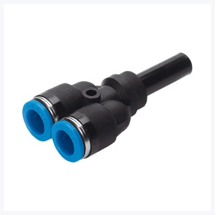 Push-in Y Connector, 1 Port 6mm OD sleeve & 2 Ports 6mm OD tube, Blue ring |